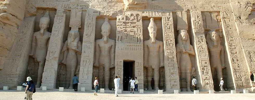 Journey to Abu Simbel from Aswan by bus and visit the Temples of Ramses II and Queen Nefertari.